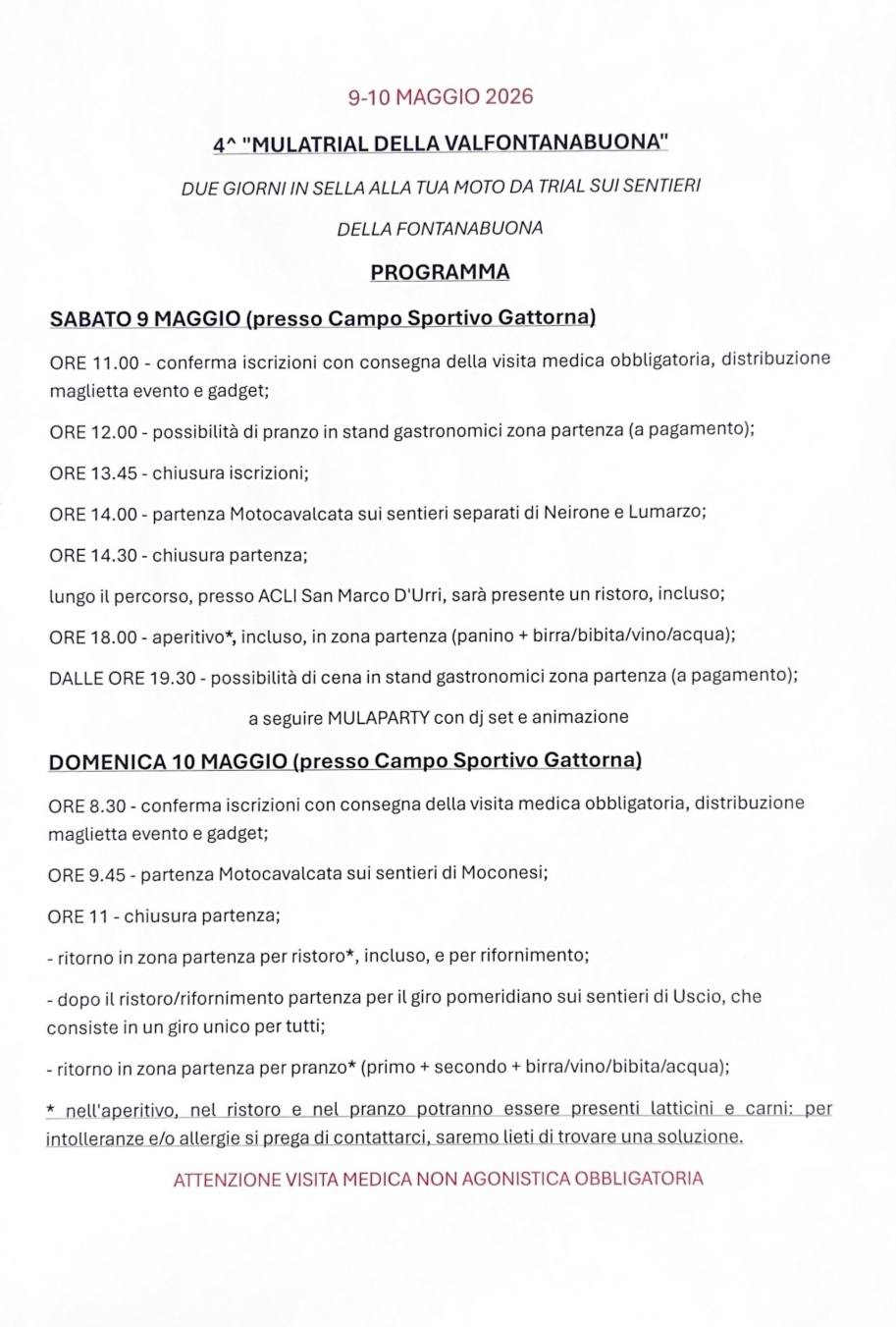 In caso di necessità contattare il Moto Club La Guardia al seguente indirizzo email motoclublaguardia@gmail.com