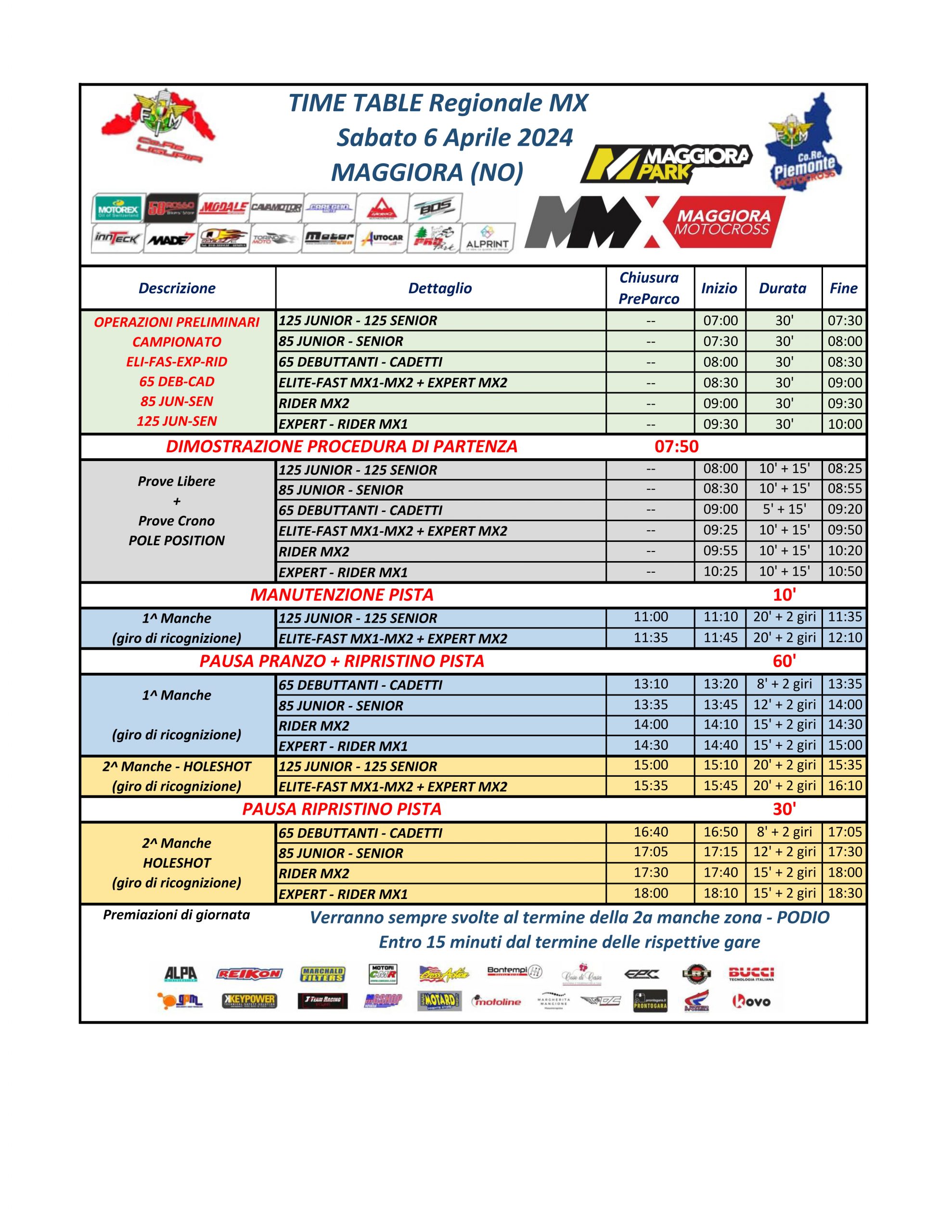 Sotto potete trovare il Time Table che verrà utilizzato nelle 2 giornate di gara